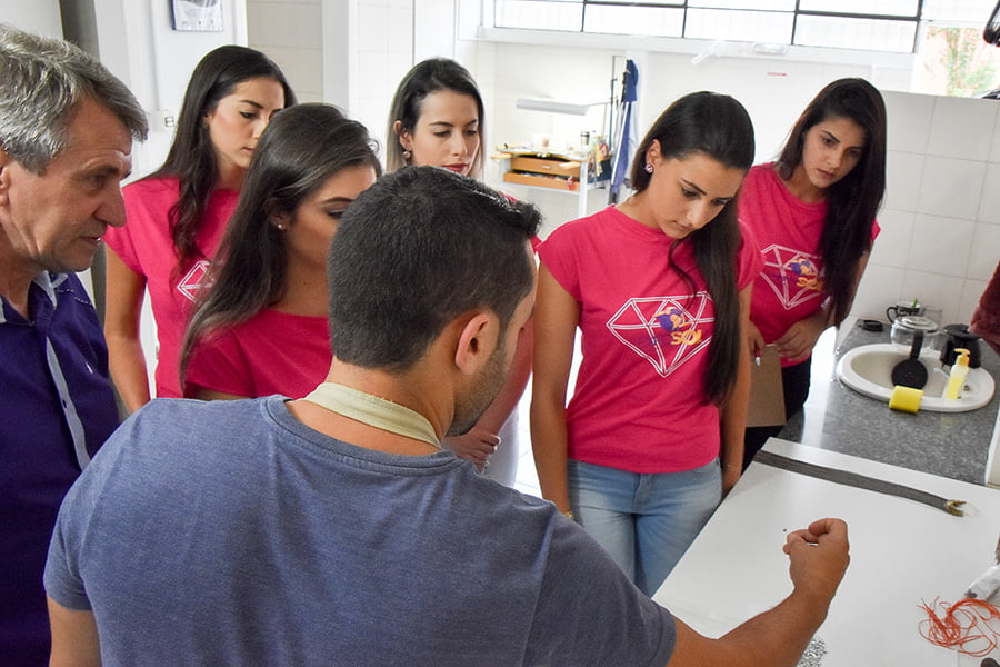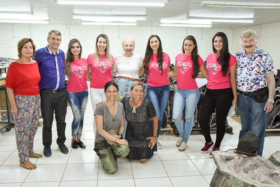 As candidatas ao título de rainha e princesas da Exposol 2019 – Feira Internacional iniciaram as atividades preparatórias ao concurso. Nesta terça-feira, 20/2, elas visitaram a empresa Bortoluzzi Pedras, oportunidade em que puderam obter informações sobre o processo de industrialização e comercialização das gemas e minerais.