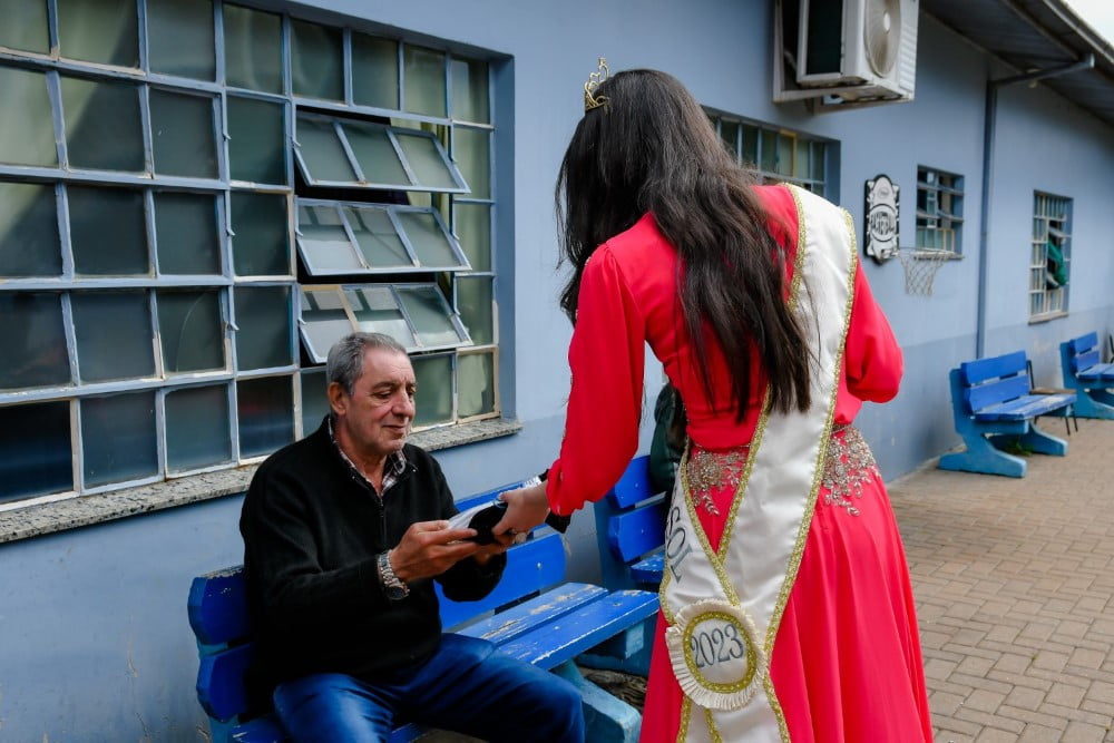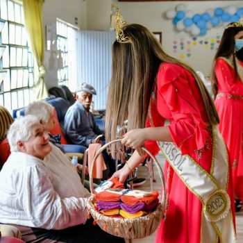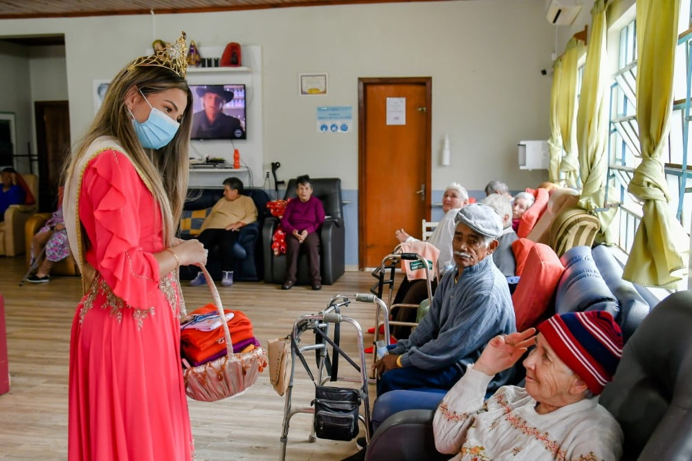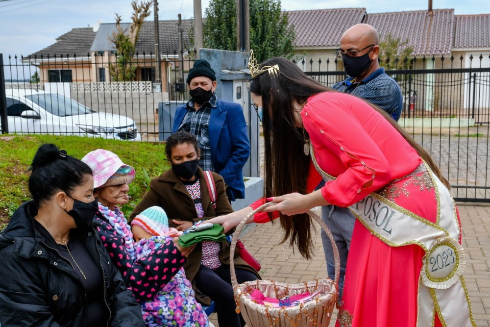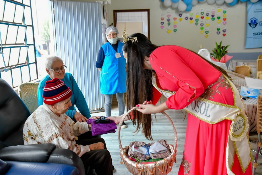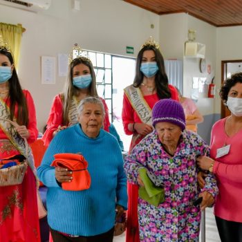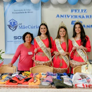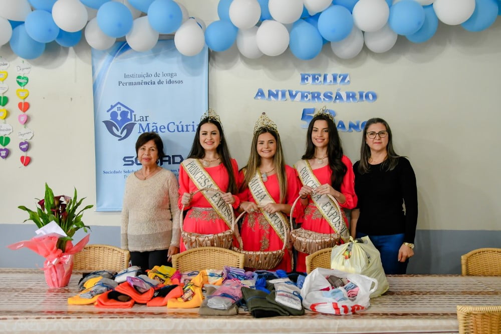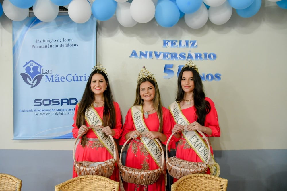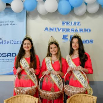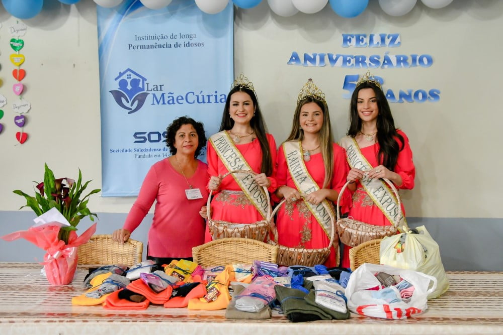 Atualmente residem no Lar Mãe Cúria 49 idosos, destes 35 mulheres e 14 homens. A Corte da Exposol esteve acompanhada da presidente do Grupo Ciranda Dilma Oliveira e Rejani Piccoli, ambas responsáveis pelo setor de recepção e soberanas das Exposol 2023.