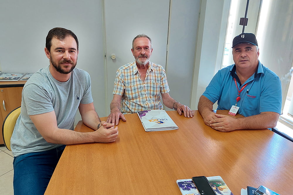 Os responsáveis pelo setor da Pecuária de Corte, Leite e Ovinos da Exposol, Roger Terra de Moraes e Júlio Groth, estiveram reunidos com o Gestor Geral da Aprosol, Orlando Sebastião Klein, na manhã desta quarta-feira, 07/12.