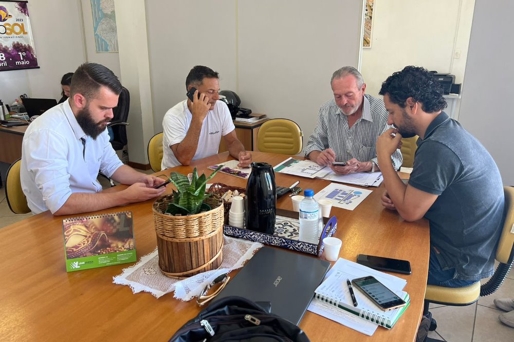 Os coordenadores do Salão do Automóvel e da Inovação e Sustentabilidade da Exposol 2023 se reuniram na manhã desta quarta-feira, 01/03, na sede da Associação Pró-Desenvolvimento do Município de Soledade, com o Gestor Geral da entidade, Orlando Sebastião Klein. O encontro teve como objetivo alinhar detalhes e verificar o andamento da organização dos dois setores para a feira.
