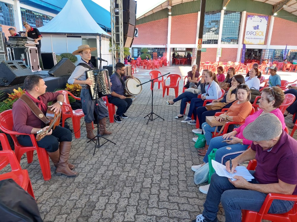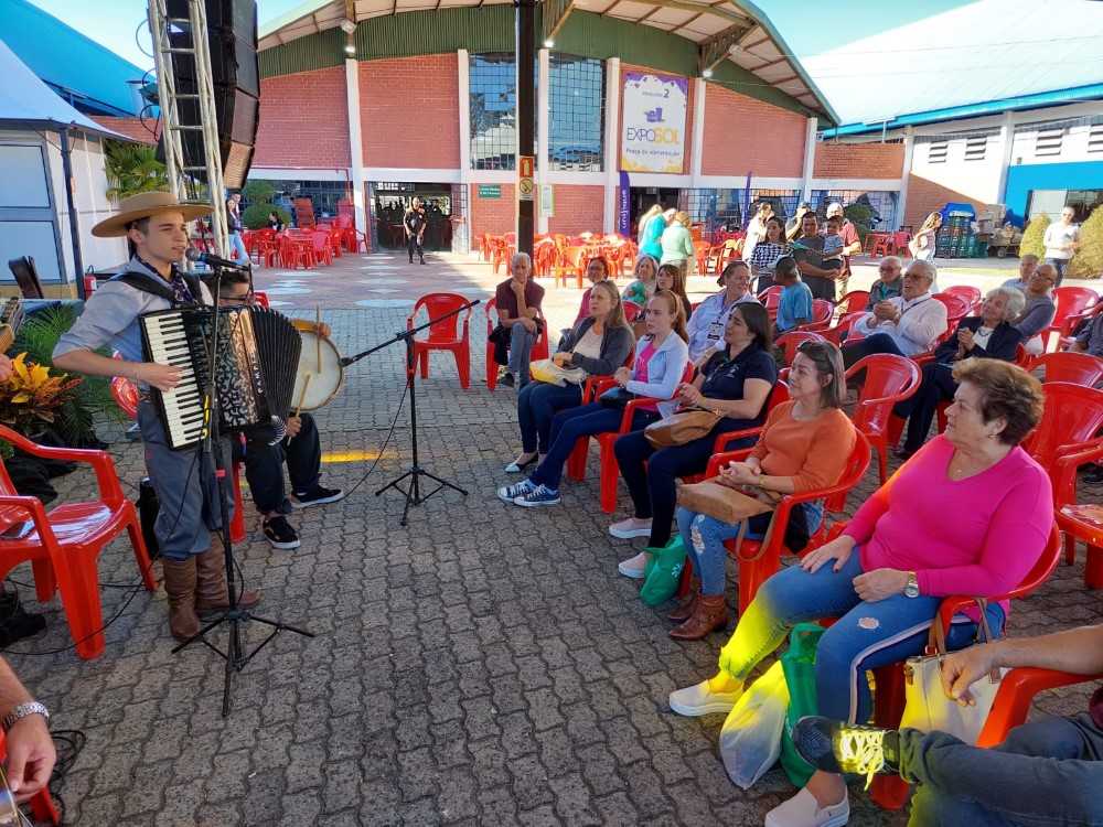 Na tarde desta sexta-feira, 28/04, a Exposol 2023 foi palco para a oficina “Projeto Circuito de Gaitas e Talentos” com Thomas Machado, o jovem campeão da segunda edição do The Voice Kids. O evento aconteceu na Praça das Bandeiras, no espaço Palco Lei Rouanet, e atraiu estudantes e visitantes interessados em aprender e interagir com o músico.