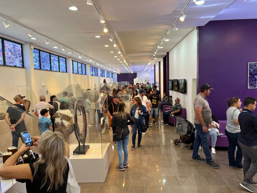 Dois guias estão disponíveis para auxiliar os visitantes, proporcionando uma experiência mais rica e informativa. Neste ano, peças novas foram acrescentadas à coleção, ampliando ainda mais o acervo e a diversidade de pedras preciosas em exposição.