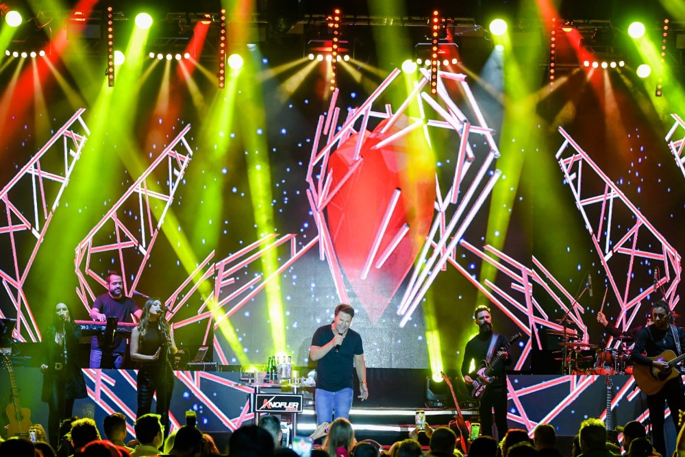 Antes do show principal, os artistas Thiago Klein e Edu Farias também subiram ao palco e animaram os presentes. A programação de shows da Exposol 2023 continua neste domingo, 30/04. No Palco 2 – Praça de Alimentação, haverá show voz e violão com Simone Mozer, às 20h30. Já a Arena Stok Center receberá, a partir das 21h, apresentações do Pagode Hashtag, Pagode 100 Moral e, encerrando a noite, show nacional com Augusto e Rafael.