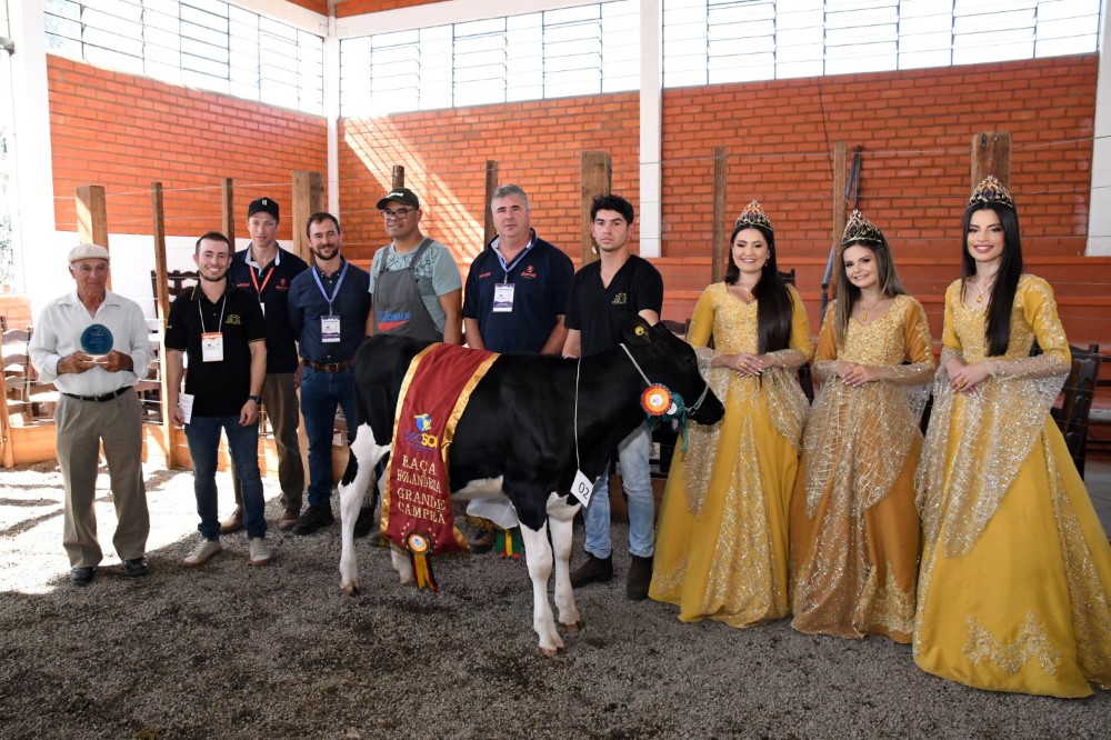Os melhores exemplares da Raça Holandesa foram premiados na Exposol 2023 no final da manhã deste domingo, 06/05, após um rigoroso processo de julgamento realizado pouco antes. A atividade fez parte da programação da Feira de Pecuária de Corte, Leite e Ovinos.