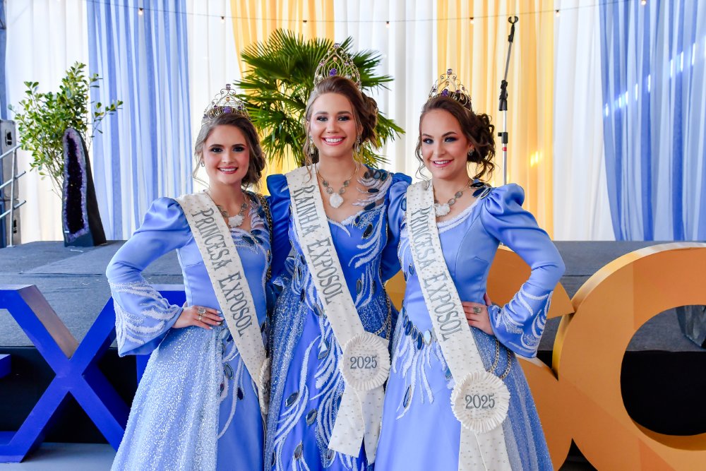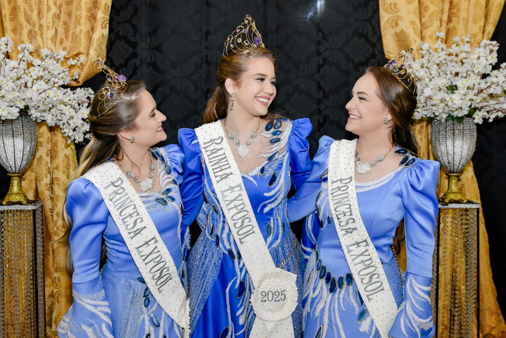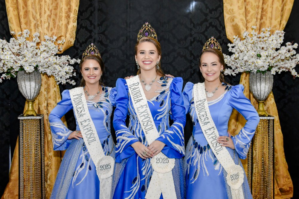 A cerimônia de encerramento da Exposol 2025 marcou também o fim do ciclo da corte deste ano. A rainha Eduarda Egert e as princesas Nikoly Bratti Balansin e Maria Eduarda D’Avila Von Helden se despediram oficialmente do reinado, com mensagens de gratidão e reconhecimento.