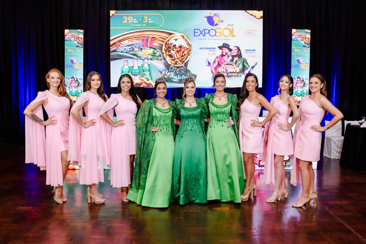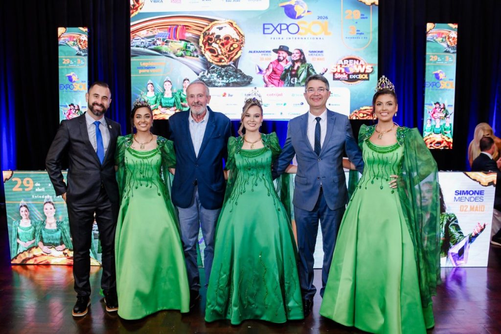 A noite também contou com a apresentação da Corte da Exposol 2026, formada pela rainha Ingrid Ottoni e pelas princesas Eduarda Schaeffer de Camargo e Larissa Sonda, que realizaram a apresentação oficial do traje de gala.