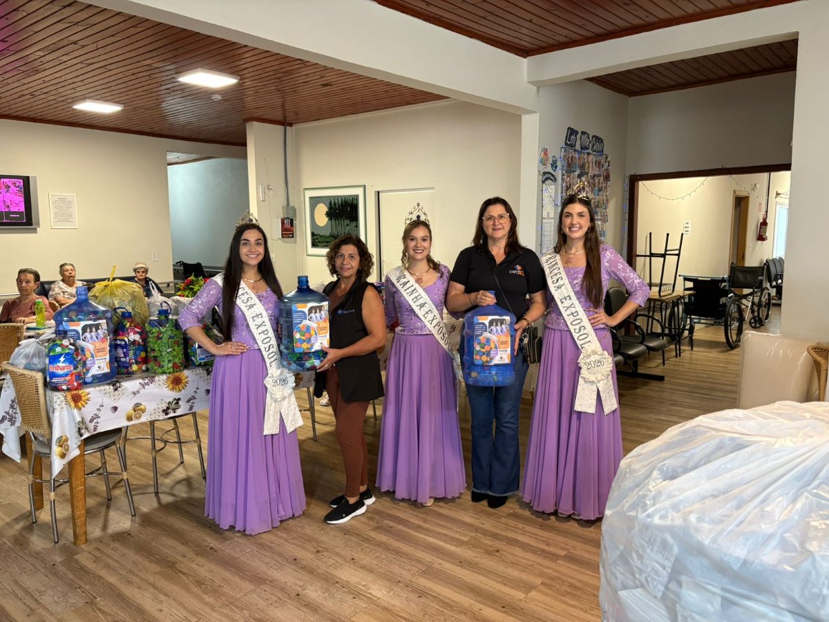 Na tarde de quinta-feira, 16/04, a Corte da Exposol 2026 esteve no Lar Mãe Cúria para realizar a entrega final das arrecadações da campanha de tampinhas e blisters, encerrada oficialmente no dia 15/04.